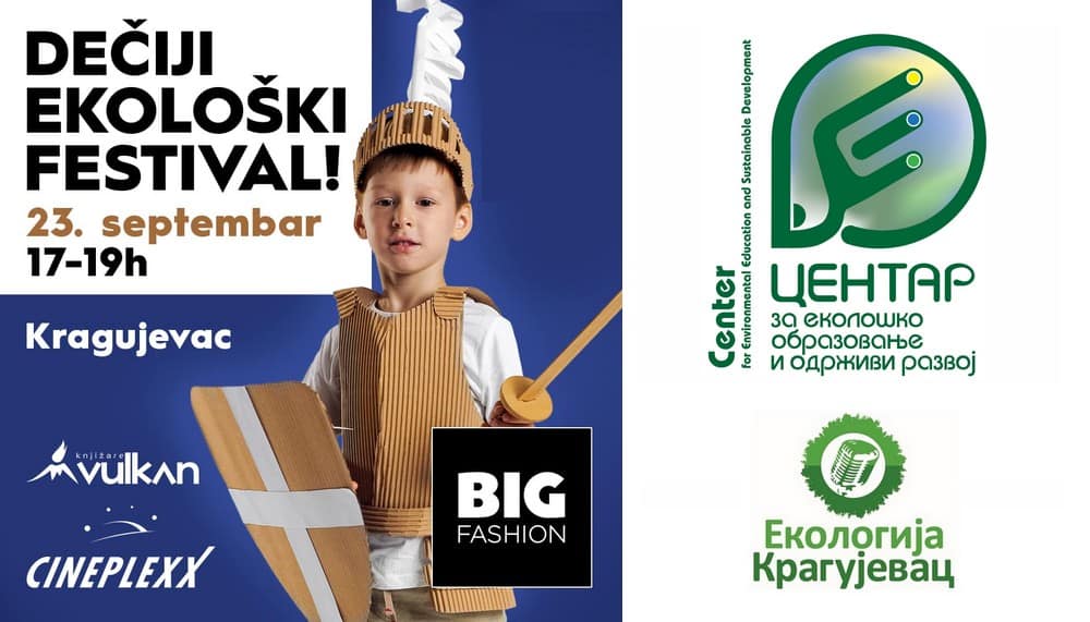 Центар за еколошко образовање и одрживи развој (ЦЕООР) организује Дечји еколошки фестивал у ТЦ Биг фешн у петак 23. септембра од 17 до 19 часова.