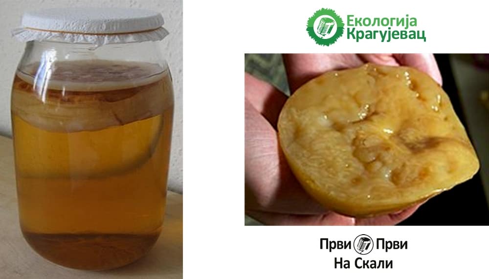 Комбуха напитак; "Целулозни плашт" формиран на површини (извор: Википедија)