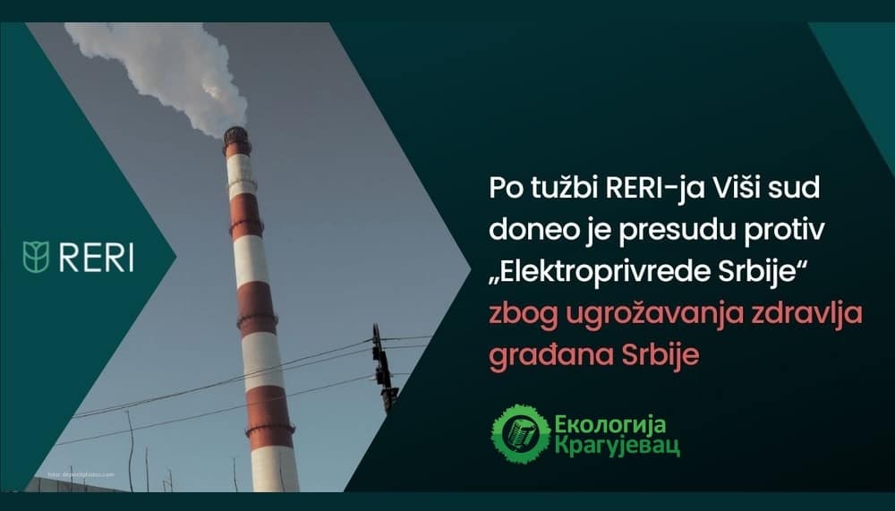 Виши суд у Београду донео је првостепену пресуду у корист Регулаторног института за обновљиву енергију и животну средину (РЕРИ) и наложио „Електропривреди Србије“ (ЕПС) да смањи емисије сумпор диоксида у термоелектранама због њихове опасности по здравље људи и животну средину.