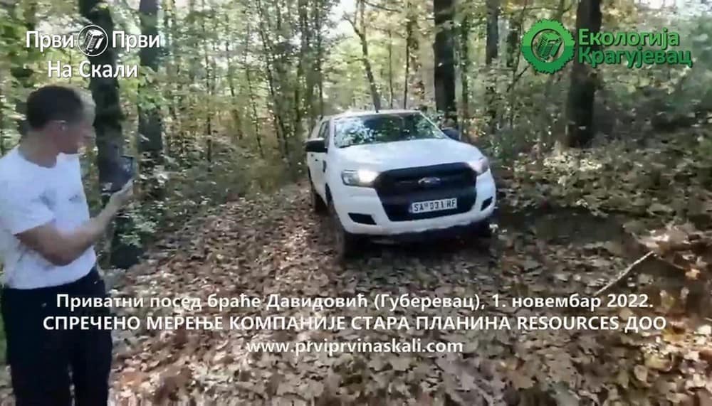 Након објаве првог снимка са поседа браће Слободана и Душана Давидовића у Губеревцу (општина Кнић) од 1. новембра који су затекли раднике ангажоване од стране предузећа Стара Планина Resources за обављање геофизичких мерења, удружење ПРВИ ПРВИ НА СКАЛИ (ППНС) је добило и дужи видео-запис у којем је забележен и одлазак ових "незваних гостију". Они су без сагласности власника парцеле започели своје активности. До одустајања је дошло након инструкција полиције у разговору са Давидовићима. Детаљно у снимку на Јутјуб каналу ППНС (0:19:52):