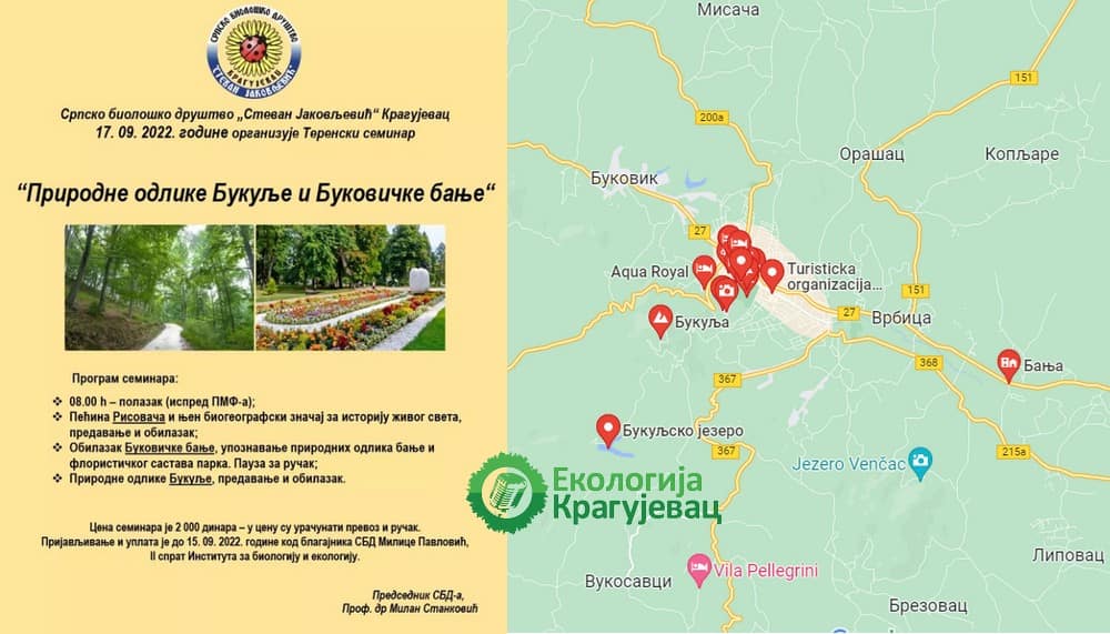 Српско биолошко друштво "Стеван Јаковљевић" организује теренски семинар "Природне одлике Букуље и Буковичке Бање" у суботу 17. септембра.