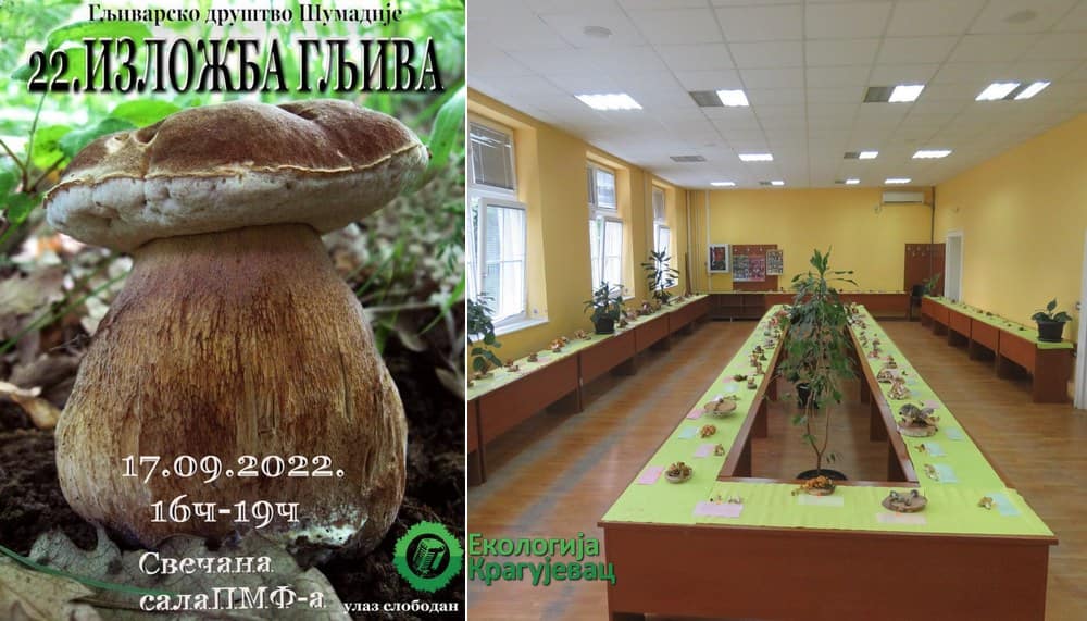 Гљиварско друштво "Шумадија" организује традиционалну изложбу гљива у свечаној сали Природно-математичког факултета у Крагујевцу у суботу 17. септембра од 16 до 19 часова. Улаз је бесплатан.