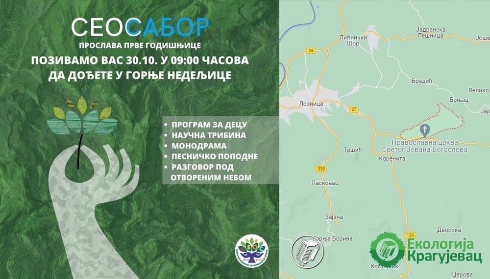 Поводом годишњице свог постојања, Савез еколошких организација Србије (СЕОС) организује први СЕОСабор, заказан у Горњим Недељицама за недељу 30. октобар.