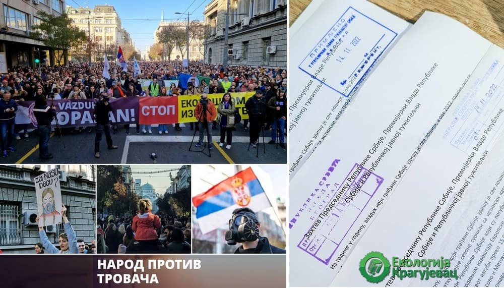 Из године у годину, ваздух који грађани Србије удишу је све лошији, а ове 2022. године смо се већ на самом почетку грејне сезоне суочили са истински катастрофалним нивоима загађења ваздуха на територији Републике Србије који су погубни по здравље целокупне популације. Подсећамо вас да по годињем извештају Европске агенције за заштиту животне средине (ЕЕА) годшње превремено живот изгуби преко 15.000 људи, првенствено од суспендованих ПМ2.5 честица (подаци без АП Косово и Метохија). Истовремено, адекватан институционални одговор на ову кризу изостаје — држава не чини оно што је потребно да би се смањила емисија загађујућих материја у ваздуху. Стање квалитета ваздуха изазива реакције како институција тако и грађана, организација цивилног друштва и медија и зато вам упућујемо хитне захтеве како би се загађење ваздуха и утицај загађења ваздуха на здравље људи смањили ОДМАХ: